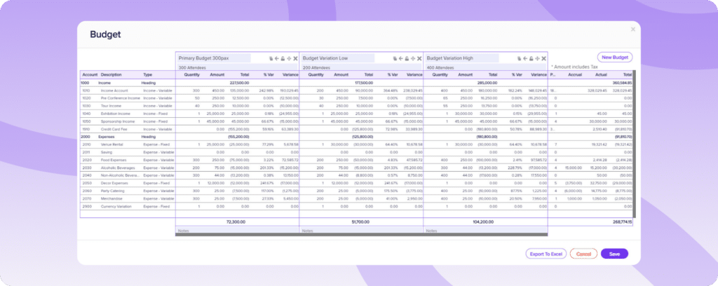 EventsAir’s built-in budget tools let you monitor planned vs. actual spend in real time. You can set budget limits by category, track expenses as they’re incurred, and generate reports that show exactly where your money went. No more end-of-event surprises or reconciling multiple spreadsheets.