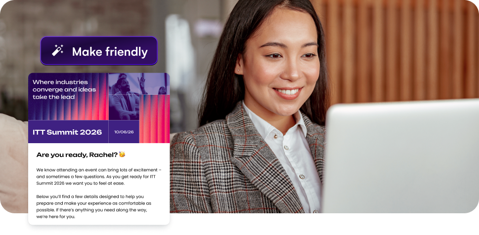 - Engage with visuals: Add speaker photos, venue images, or short videos to build trust and excitement.