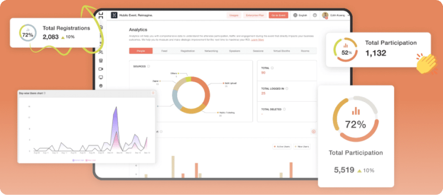 Hubilo is a virtual and in-person event platform built to boost attendee engagement while offering a branded, seamless experience across desktop and mobile.