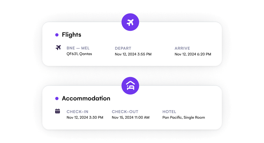Maximize revenue retention and minimize risk with dedicated travel and accommodation tools to streamline bookings, itineraries and transfers.ย